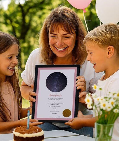 - Printed Gift Set: arrives in 2–4 business days and includes your printed certificate, star map, and elegant presentation folder. You’ll still receive your digital copy right away.